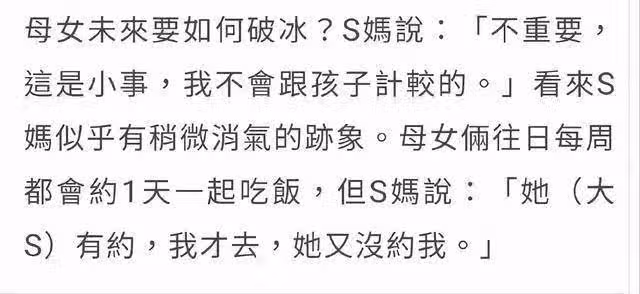 甚至她還因此和女兒關係一度有點鬧僵,接受採訪時也是話里話外內涵大S,說她為愛沖昏頭腦,勸她也不聽。