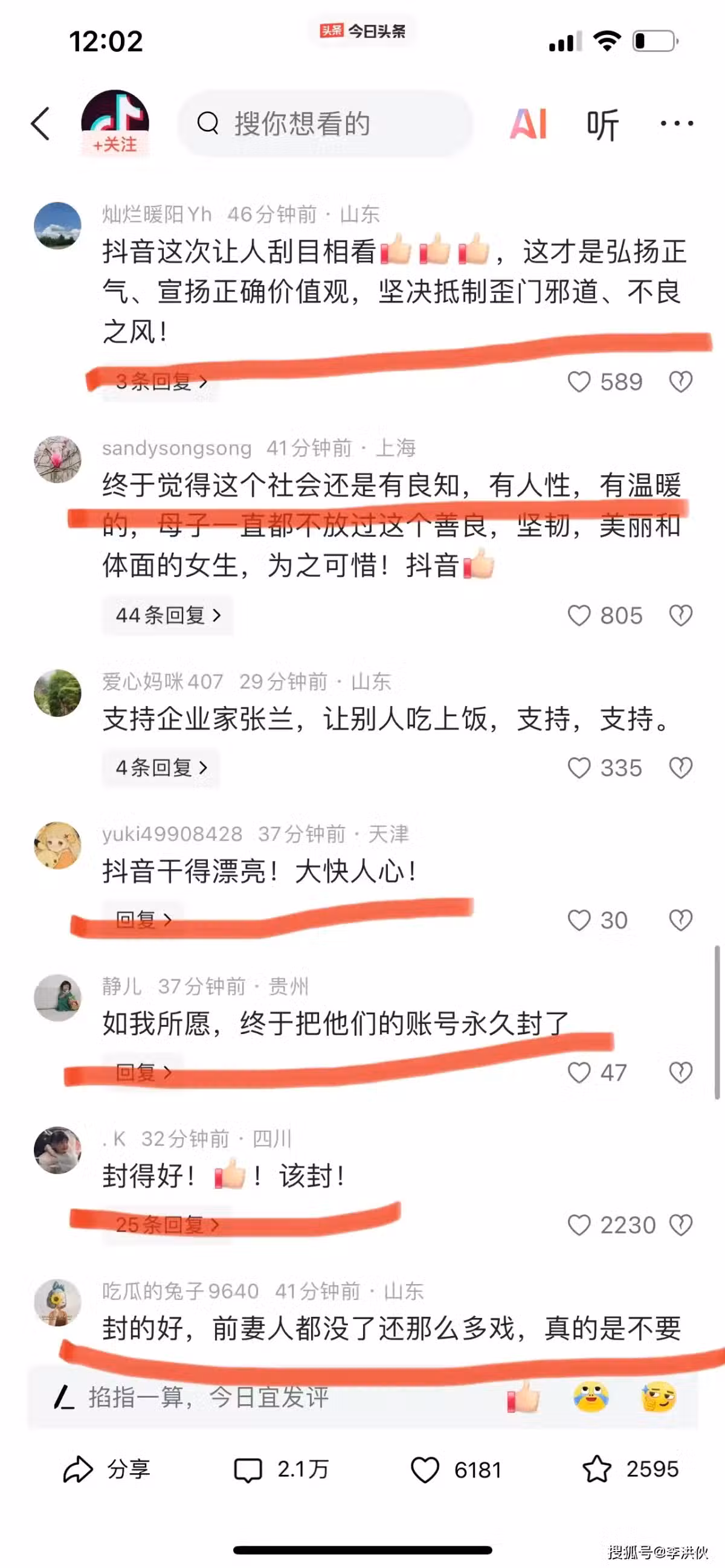 對於平台的做法,大多數網友持支持意見,有網友表示:「大快人心」,「終於覺得這個社會還是有良知的」,「封得好,該封」,「平台的做法讓人刮目相看」。