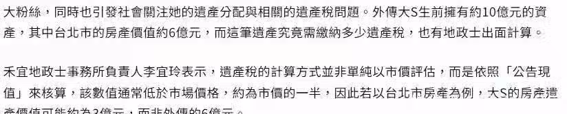人算不如天算!超6000萬遺產稅或讓大S家望而卻步,恐人財兩失!