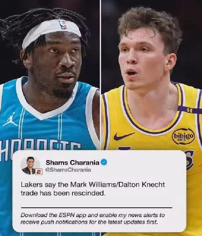 湖人官方宣布,由於黃蜂未滿足交易條件,馬克-威廉士把天賦帶到洛杉磯一事取消。