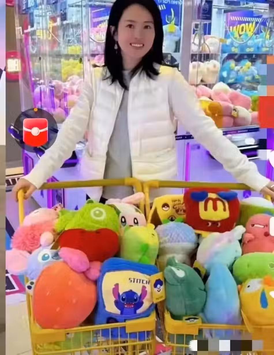 跟著教練抓娃娃,陳若琳推著兩車娃娃,這滿滿的收穫…… 全紅嬋太可愛了,不僅喜歡小烏龜,還喜歡各種毛絨娃娃呢。