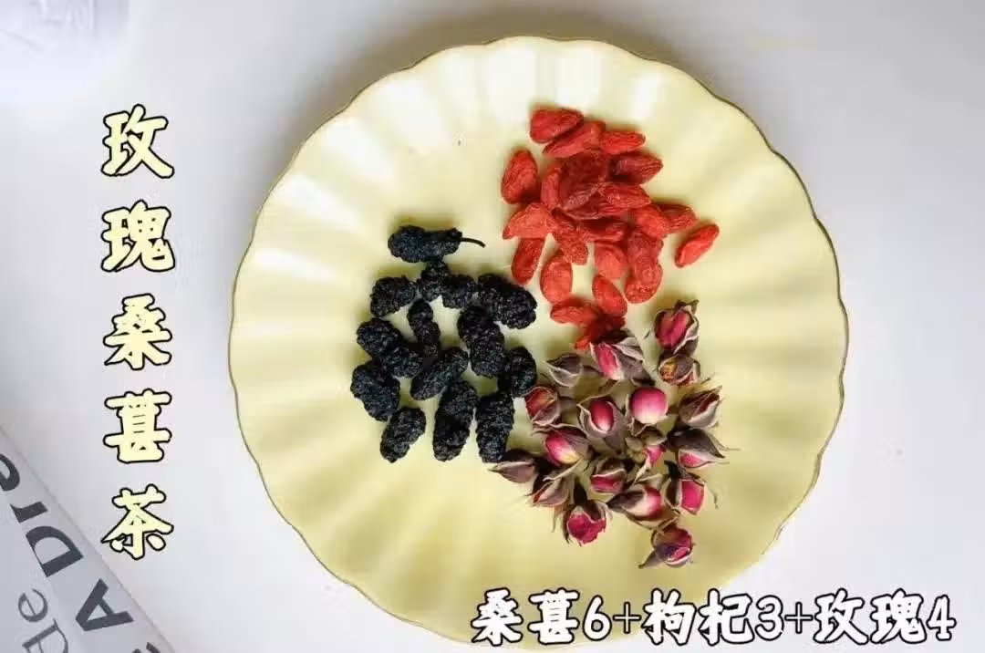 食材:玫瑰花4g | 桑葚6g | 枸杞3g