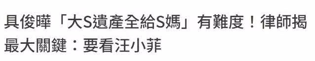 即便具俊曄簽署繼承協議,仍需要生父汪小菲參與並代表子女同意。也就是說,大S的財產管理權,還是和前夫汪小菲緊密有關。