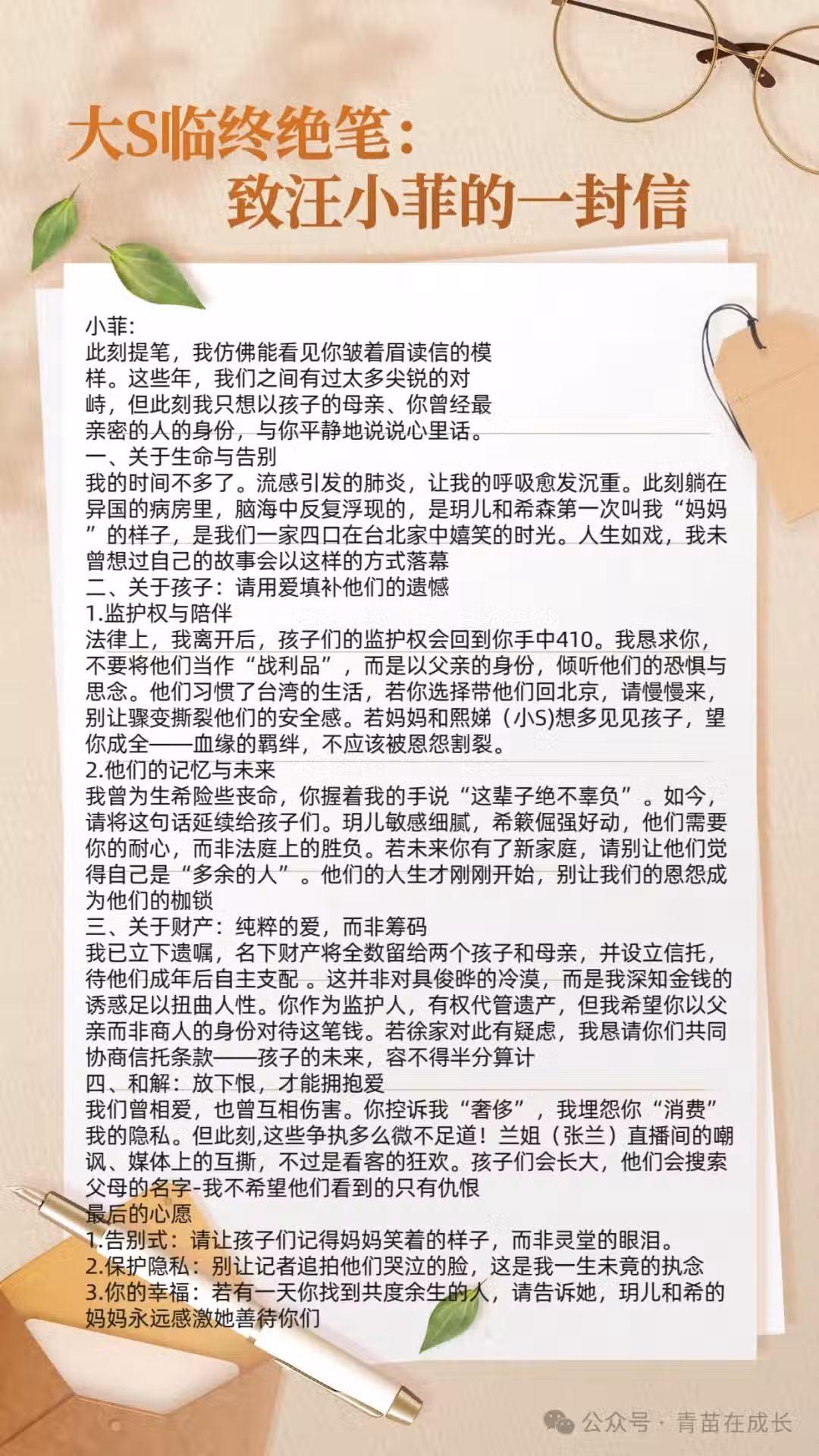 在這個信息爆炸的時代,明星的私生活總是被無限放大,成為公眾茶餘飯後的談資。然而,當一位母親在生命的最後時刻,選擇用一封信來表達她對孩子、對前夫、對人生的最後牽掛時,我們看到的不僅僅是一個明星的故事,更是一位普通母親的深情告白。