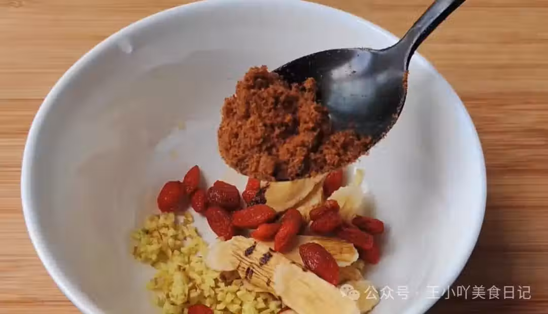 3.混合食材:將切好的生薑丁、準備好的黃芪和枸杞放入一個小碗中。此時,可以根據個人口味調整紅糖的用量,一般來說,50克紅糖已經足夠提供足夠的甜味和滋補效果。加入紅糖後,倒入足夠的清水,水量以剛好沒過所有食材為宜。