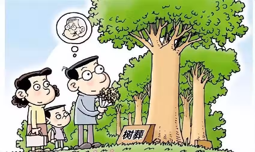樹葬花葬:有的地方也稱為露天葬,這個方式非常迎合大家的傳統觀念入土為安,就是沒有墳頭了,火葬以後剩一把灰,找個地方找棵樹,不立碑沒有墳頭,不用花錢買棺材等之類的花費,直接把骨灰埋到某棵樹旁邊就可以了,以後子女想念死去的父母也有個念想。
