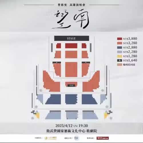 活動票價|NT$ 3880 / 3280 / 2880 / 2280 / 1280(全區座席)