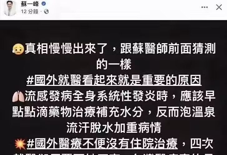 破案了 ! 胸科醫生談大S病亡真相:根本不是流感,還去泡溫泉很離譜!