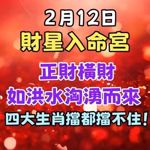 2月12日財星入命宮,正財橫財如洪水洶湧而來,四大生肖擋都擋不住!
