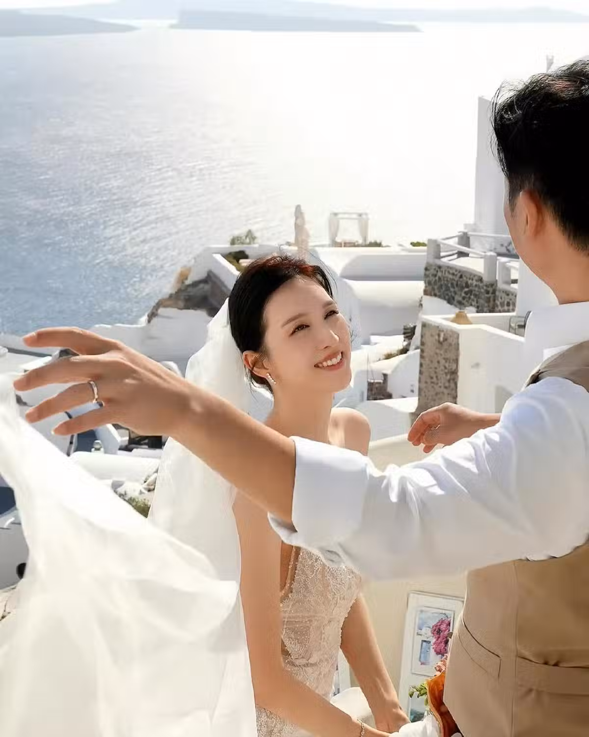一旁的新婚老公並沒有露出正臉,估計是圈外人士,所以何天兒為了保護老公的隱私,並沒有過多透露。但從側臉可以估計,兩人的年齡應該差不多。