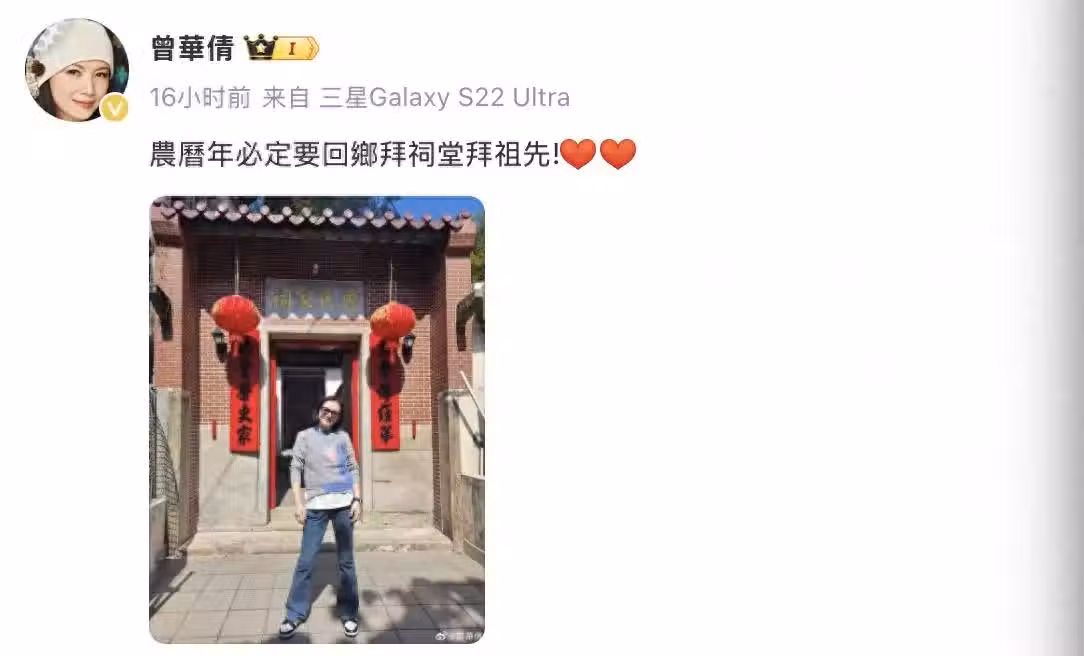 趁著天公作美,天晴氣爽,又不是太冷,曾華倩返回鄉下拜祭祖先。曾華倩所謂的鄉下其實就是她的出生地。曾華倩的祖籍是廣東寶安客家,但是家族在很多年前都已經遷徙到了香港生活,定居在香港葵涌九華徑,而她也是在九華徑出生的,所以她就視此處為自己的鄉下,即是老家。在香港九華徑設有曾氏家祠,還有曾大屋,而曾家的傳統,就是每一年農曆新年家族後代都要回鄉拜祭祖先,曾華倩作為曾氏後人,每一年農曆新年都回去。