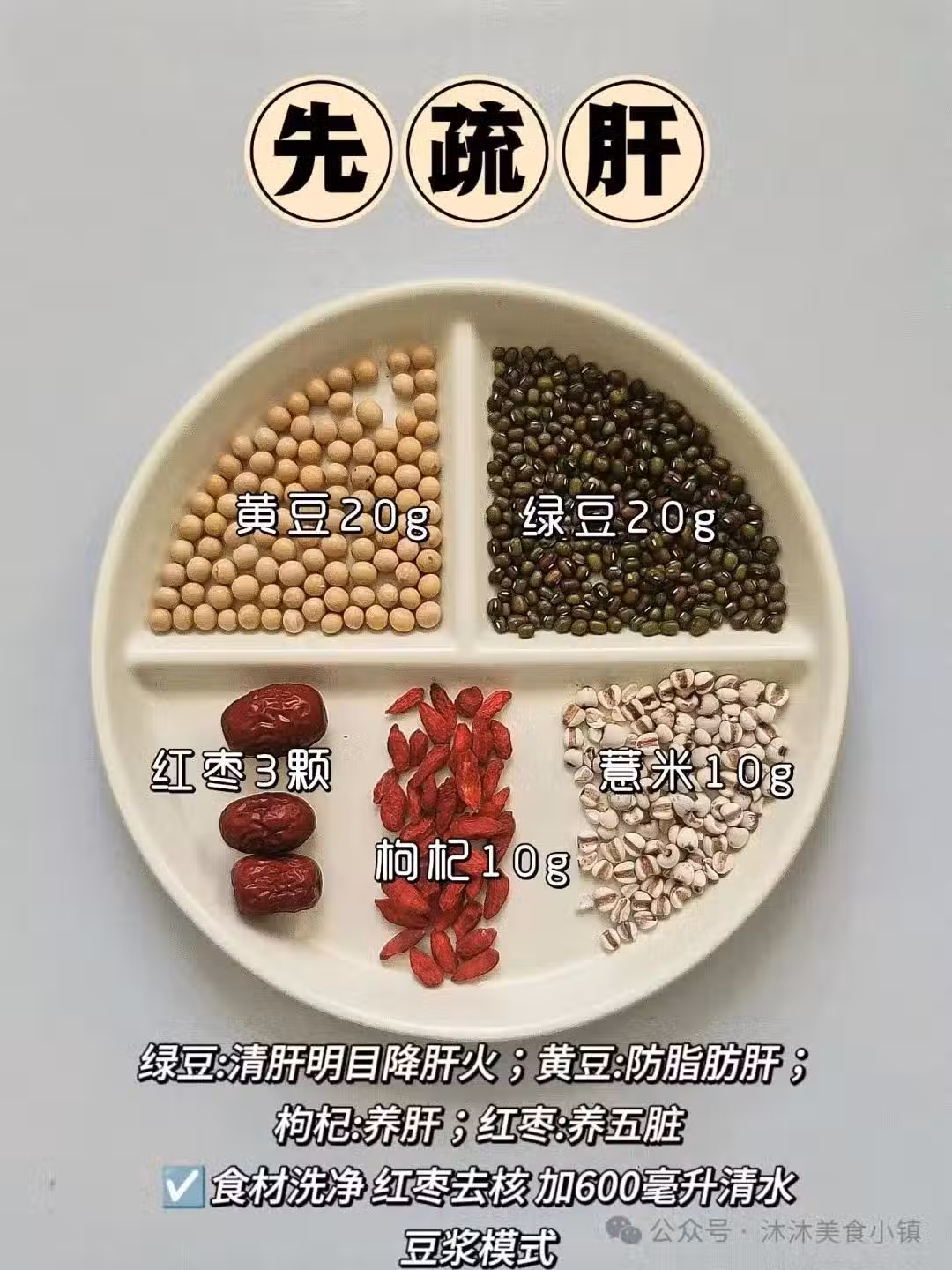 肝臟是身體的解毒器官,只有肝臟順暢了,脾胃才能更好地吸收營養!這個階段的豆漿配方特別加入了綠豆、黃豆、熟薏米、枸杞和紅棗,幫助舒緩肝臟壓力。