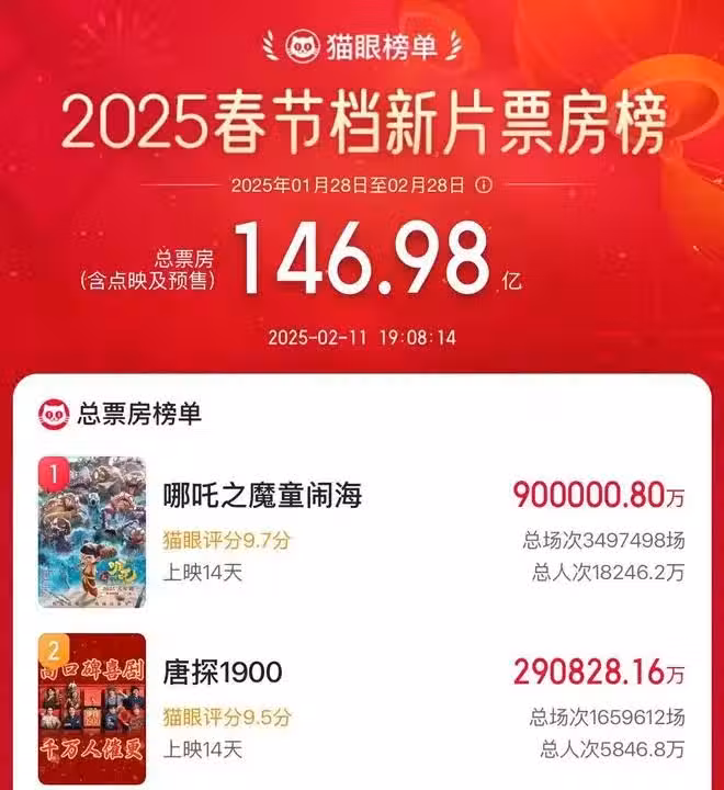 2月11日,已經將春節檔票房冠軍收入囊中的《哪吒2》再收喜報,總票房成功突破90億大關。不僅成為了國內第一部破90億的電影,更是在全球票房榜單上進一步提升排名,超過了《速度與激情8》位居第27位,在動畫電影票房榜單上更是高居第6位!