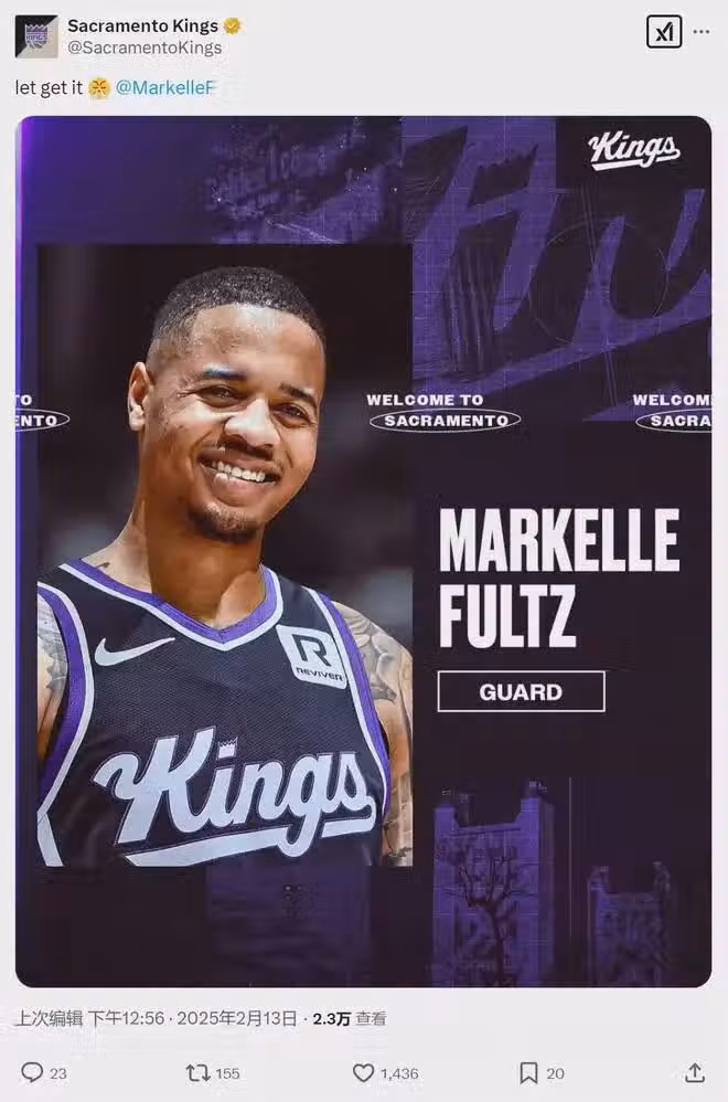 2月13日下午,薩克拉門托國王官方宣布:球隊正式簽約自由球員馬克爾-富爾茨。常規賽已經過半,富爾茨終於找到工作了。合同細節並未公布,不出意外的話,這應該是一份底薪。不管如何,恭喜富爾茨能夠重返NBA!
