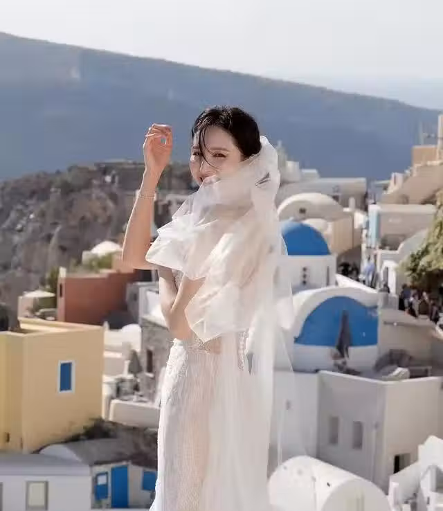 從何天兒在社交媒體上分享的照片可以看到,她穿著白色的婚紗、戴著白色的頭紗,化著精緻的妝容,非常漂亮。