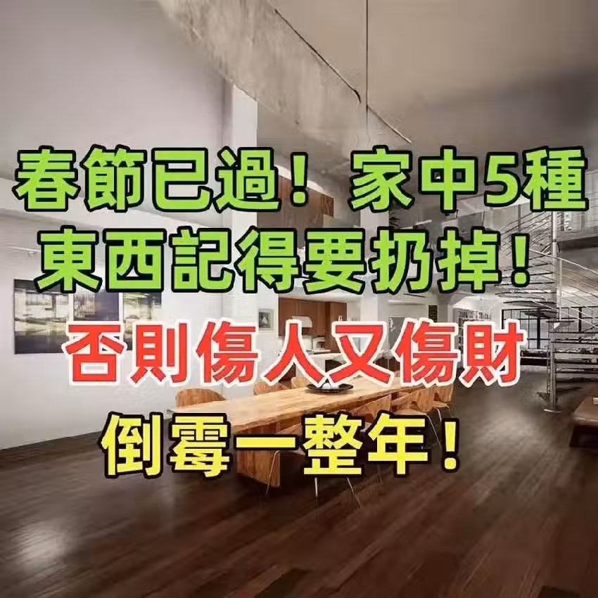 春節過後,很多人都會忙著收拾家裡,但你知道嗎? 有些東西留在家裡,會影響運勢,甚至帶來霉運和破財的風險! 😨 老祖宗流傳下來的智慧告訴我們,這5樣東西一定要儘早清理,否則不僅會影響財運,還可能導致家人健康受損、人際關係不順! 快看看你家有沒有這些「掃走霉運」的必扔之物,趕緊清理,讓2025年好運滾滾來! 🎉💰