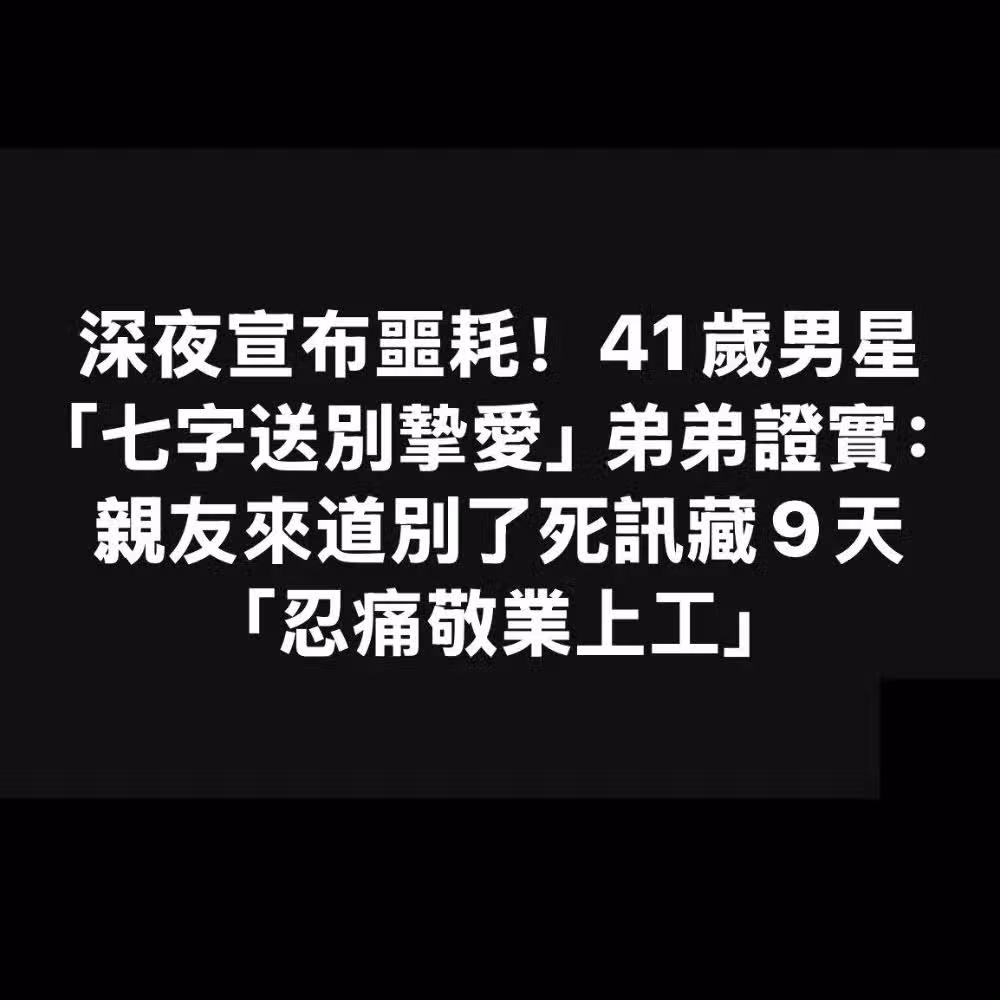 深夜宣布噩耗!41歲男星「七字送別摯愛」弟弟證實:親友來道別了 死訊藏9天「忍痛敬業上工!」