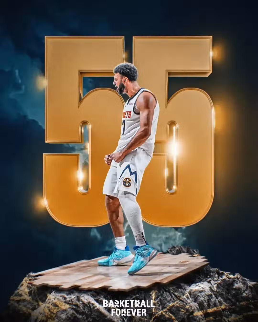 掘金的其他球員則在本場的比賽用球上簽名,慶祝隊友的55分。