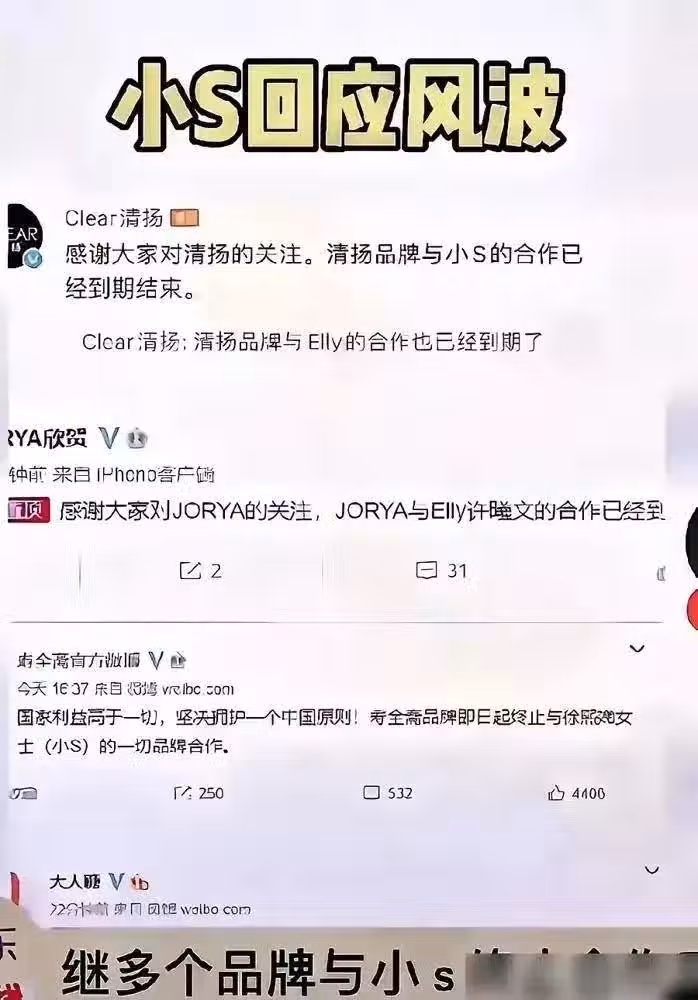 因為最近小s的話題度太高,以至於牽連到她代言的產品,她代言多年的品牌清揚宣布不再和小s續約,小s二女兒的代言也宣告結束。