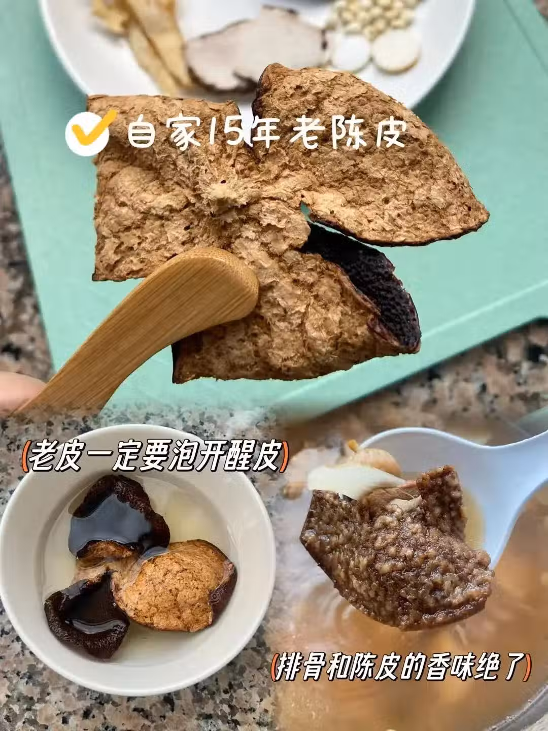 食材處理:虎乳菌、陳皮、川貝、杏仁、玉竹洗凈,浸泡半小時;山藥去皮切塊,泡入清水中防止氧化;無花果洗凈;排骨切段,冷水下鍋,加薑片、蔥段、料酒焯水後撈出。