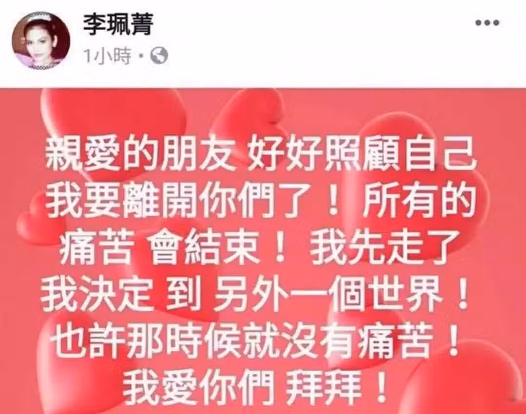 在得知李佩菁輕生的念頭後,警方趕到李佩菁家中,一起將李佩菁送往醫院治療後脫離危險。