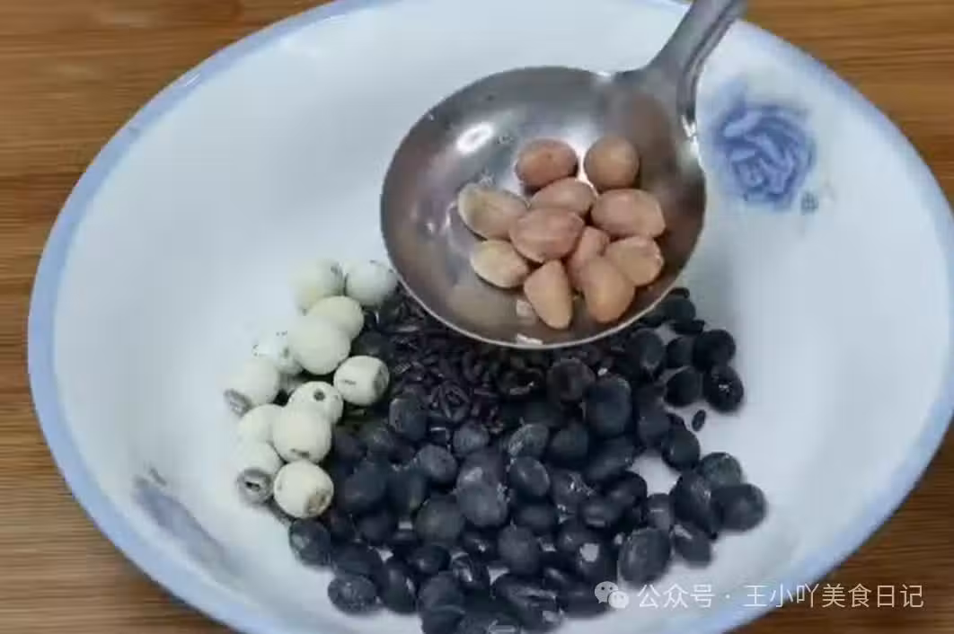 1.食材準備與清洗:首先,將黑豆、黑米、蓮子、花生米一同倒入大碗中,加入足夠的清水,用手輕輕搓洗,去除表面的灰塵和雜質。然後,將水倒出,再用清水沖洗一遍,確保食材幹凈無雜質。蘋果洗凈後,用鹽搓洗表皮,去除果蠟,保留營養豐富的果皮。紅棗則加入一勺麵粉和清水,利用麵粉的吸附力,抓洗幾遍,去除皺褶里的髒物和雜質,最後在流動水下沖洗乾淨。