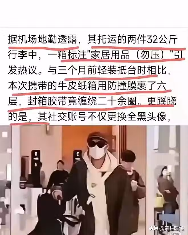 更讓人爭議的是,他帶著32公斤的行李返韓,也成了一大謎團。在他託運的兩件行李中有標註著「家居用品(勿壓)」字樣。