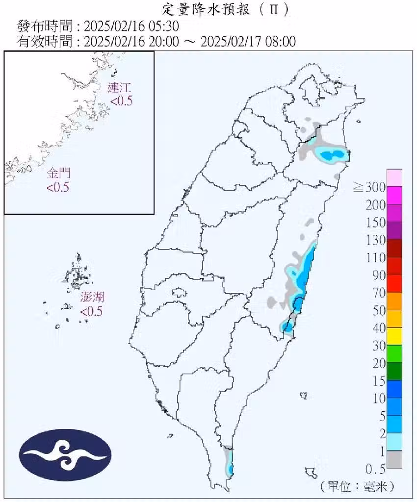 氣象署表示,周三白天起至周四冷氣團逐漸減弱,迎風面水汽稍減,周三基隆北海岸、東半部及恆春半島有局部短暫雨,大台北亦有局部短暫雨;周四花東有局部短暫雨,北部及宜蘭僅有零星短暫雨。