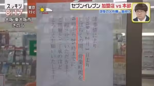 在日本超商7-ELEVEN的契約中,明確規定「除非通過書面協議達成特殊共識,否則不允許門市的營業時間未滿24小時,除了位於辦公大樓內門市可除外。」總部告知該店長,如果不恢復24小時營業,他必須支付違約金。