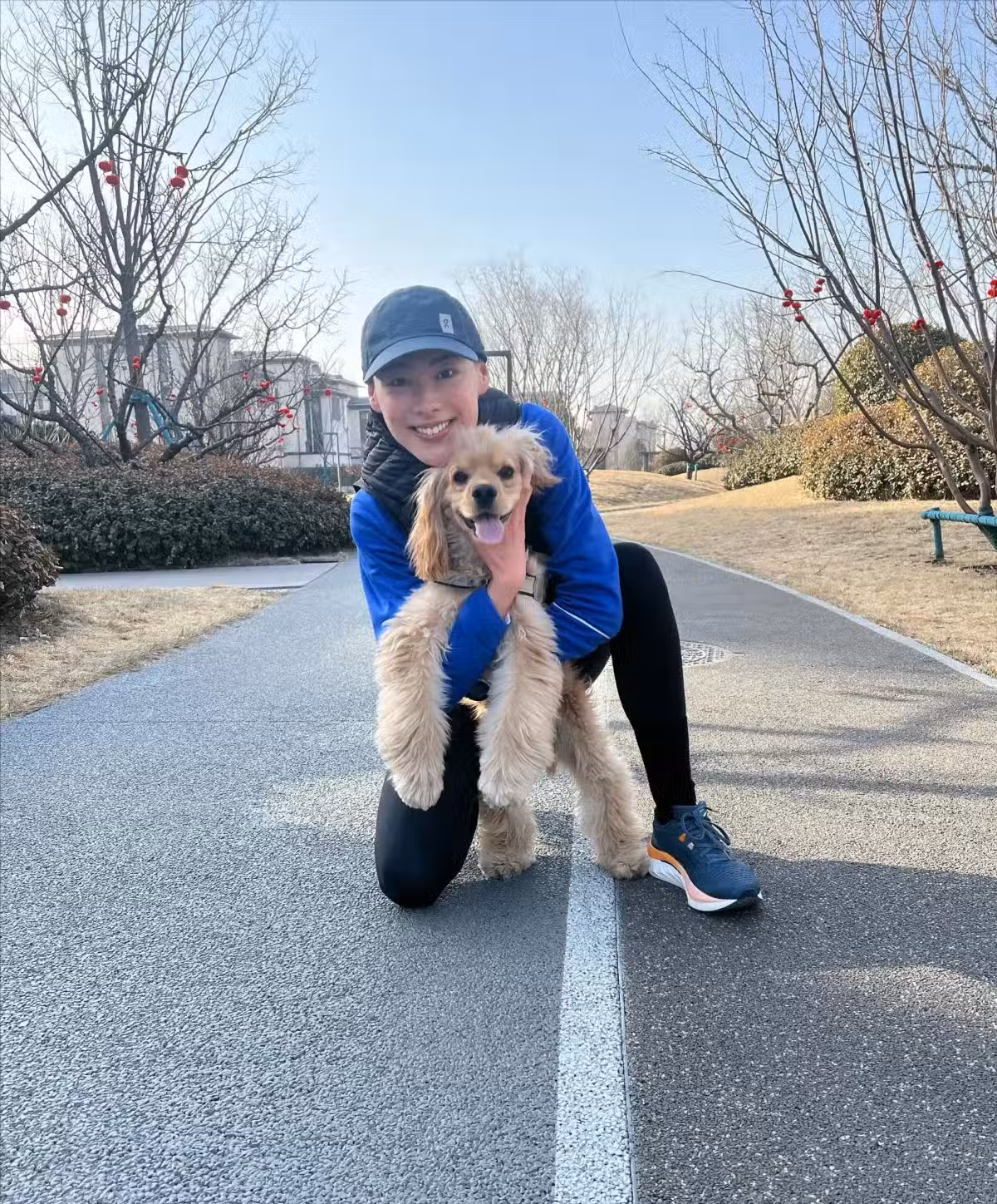梁洛施疑似定居北京生活,周末公園遛狗好愜意!網友:應該戀愛了