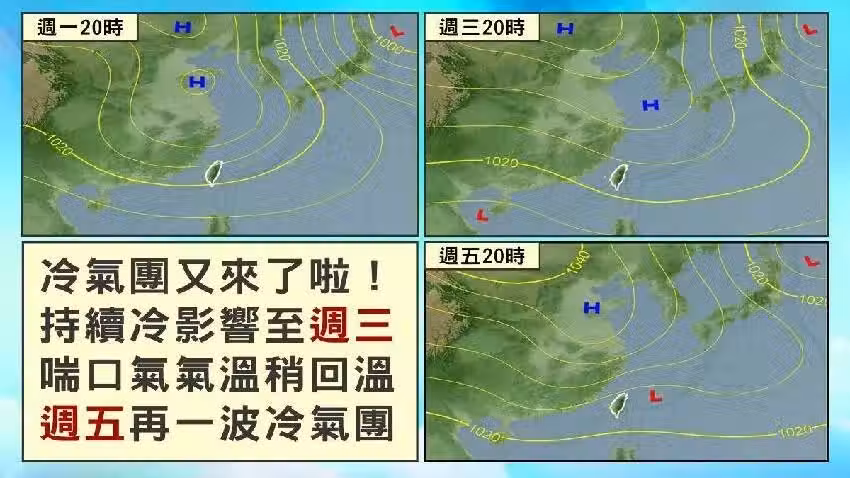 林得恩續稱,周三白天至周四(20日)大陸冷氣團減弱,中場休息,日間短暫回溫,早晚溫差增大。