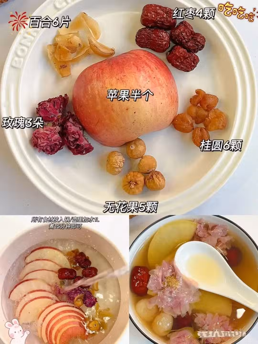 家人們,老中醫力薦的蘋果女神湯來啦!喝了它,睡眠變好,氣色也超絕!這湯性質溫和,怎么喝都不會上火,還能美容養顏。煮過的蘋果可以健脾養胃,桂圓肉則能寧心養血。