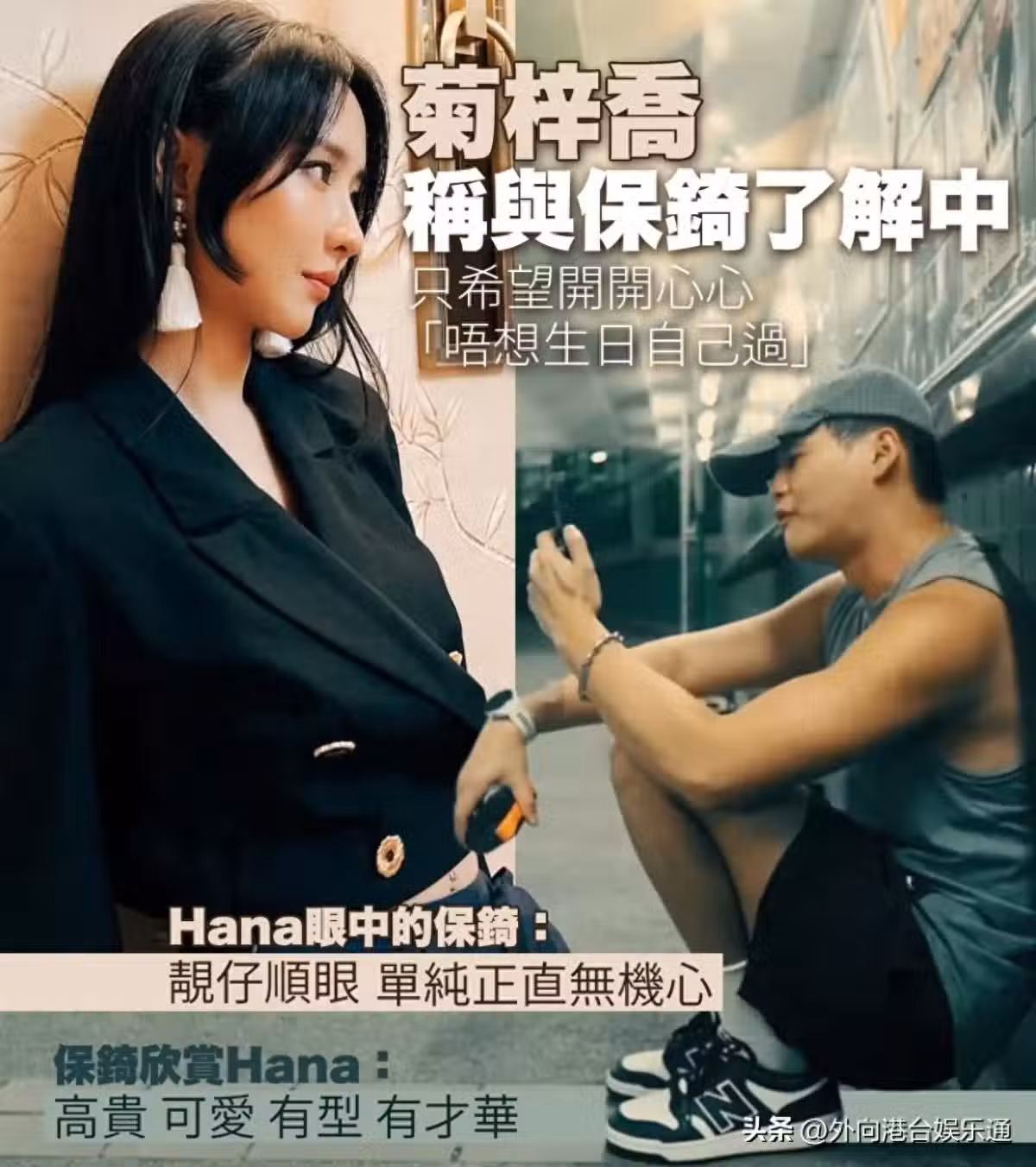 前TVB星夢(音樂部門)一姐菊梓喬去年被指和ViuTV藝人、香港第二天團ERROR成員吳保錡交往,隨後男方默認雙方正在了解中,並公開承認自己已有女友,引發外界熱議。近日,這段戀情似乎告吹了。