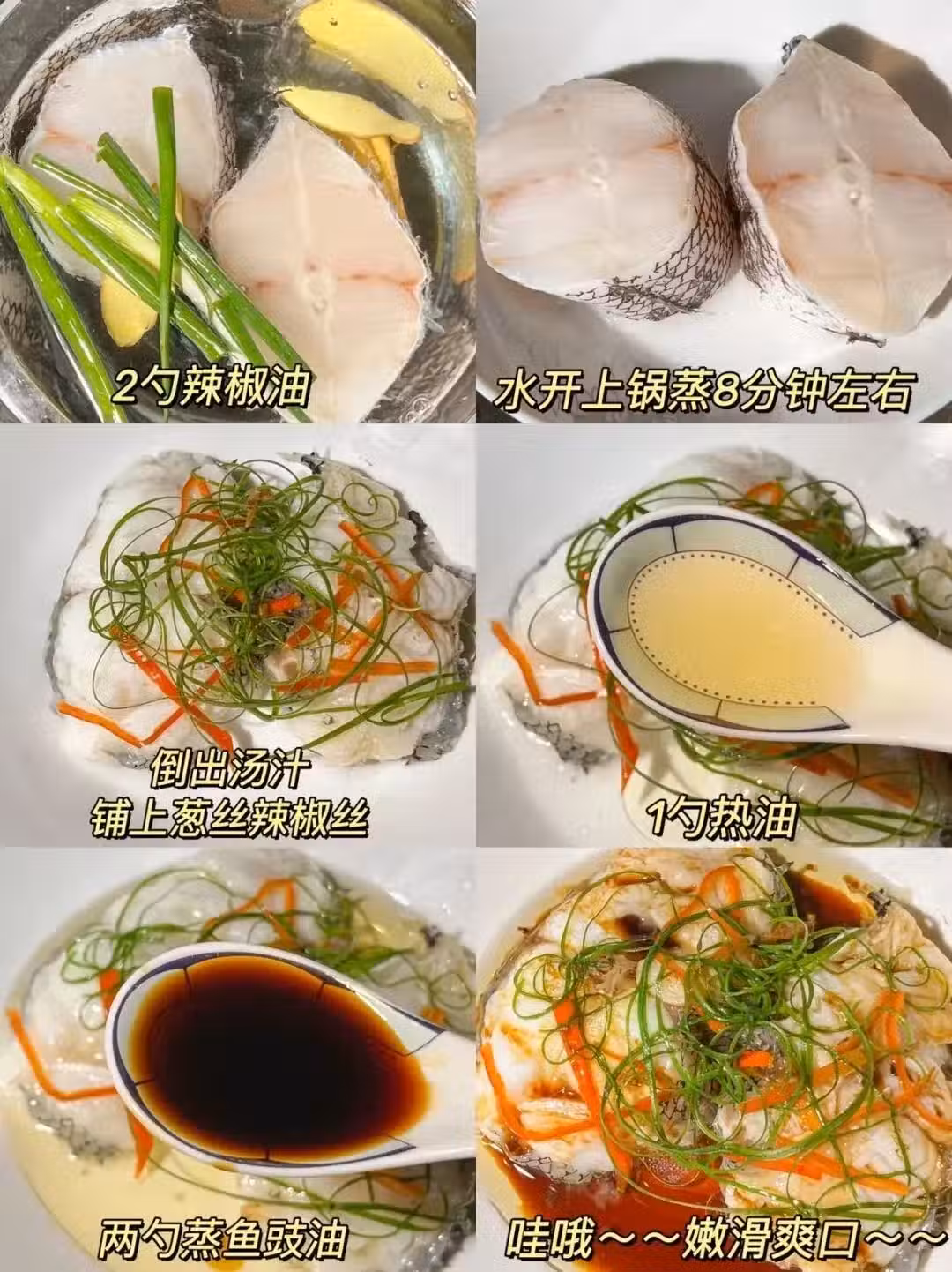 3️⃣鋪上蔥絲,辣椒絲,淋上一勺熱油,兩勺蒸魚豉油即可!!