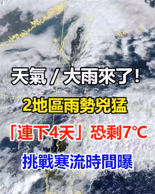 快訊/大雨來了!2地區雨勢兇猛「連下4天」恐剩7℃,挑戰寒流時間曝