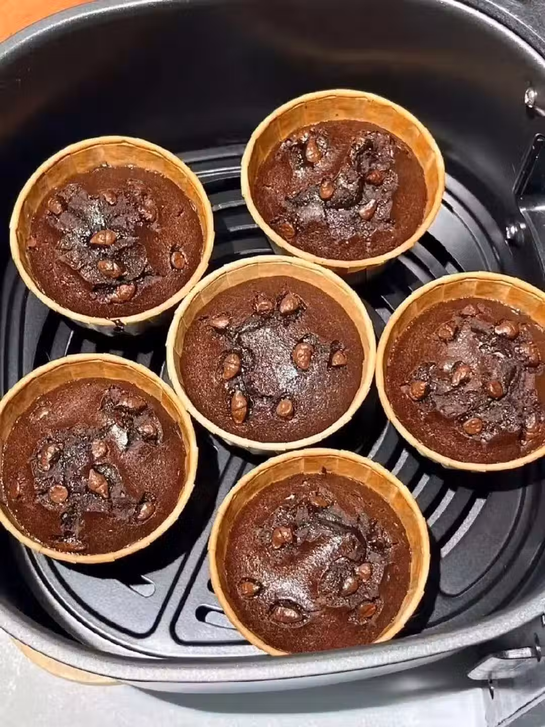 4️⃣ 空氣炸鍋160℃烤12分鐘,爆漿核心:中間插巧克力塊