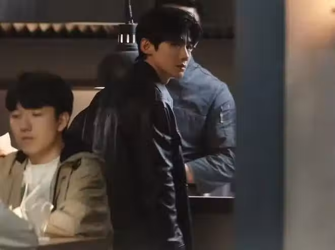 衣服借給女主後,身上有垂感的黑襯衫,更顯出了白敬亭肩寬腿長的身材。