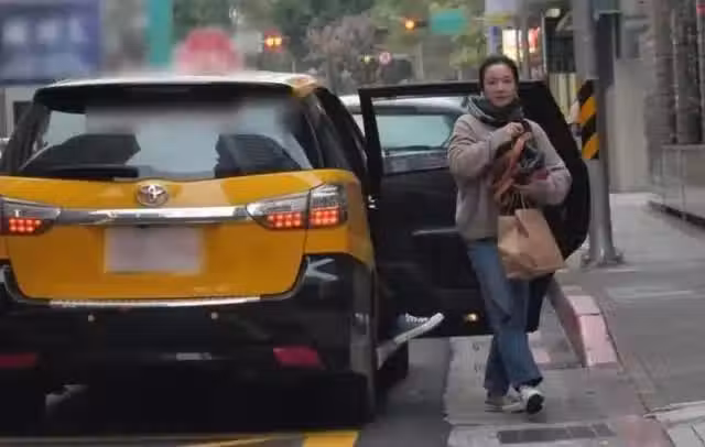露面的阿雅表情嚴肅略顯憔悴,一身素裝打扮與朋友從的士車上下來。