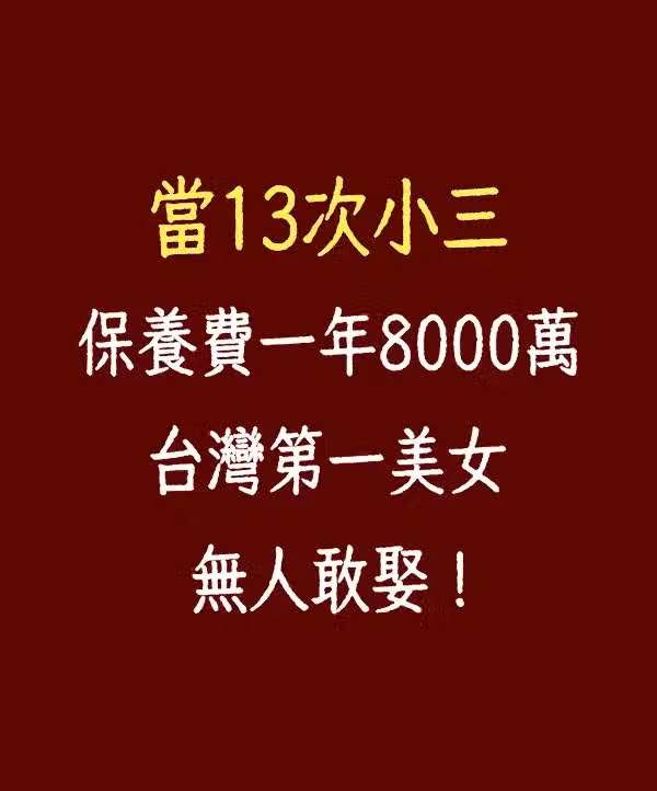 當13次小三,保養費一年8000萬,台灣第一美女無人敢娶!