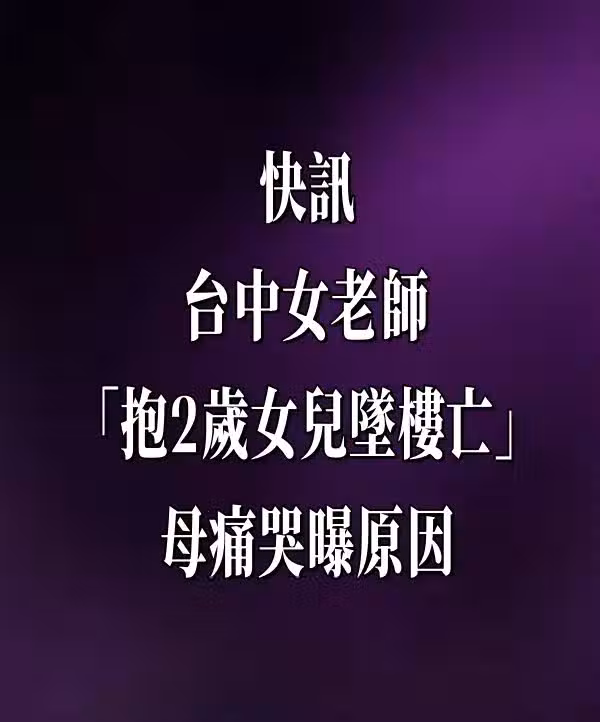 快訊/台中女教師「抱2歲女兒墜樓亡」母痛哭曝原因!