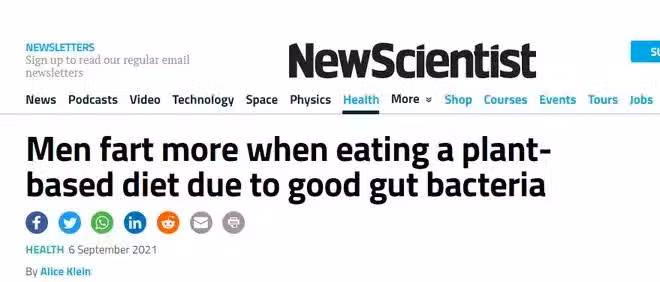因此,在該項研究證實下,攝入植物性食物後放屁增多,其實不是什麼壞事,一定程度上是結腸健康的標誌。