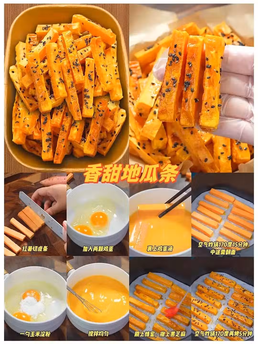 真誠建議一次烤三盤!地瓜切粗條裹蜂蜜,烤到焦糖色能拉出金絲兒。