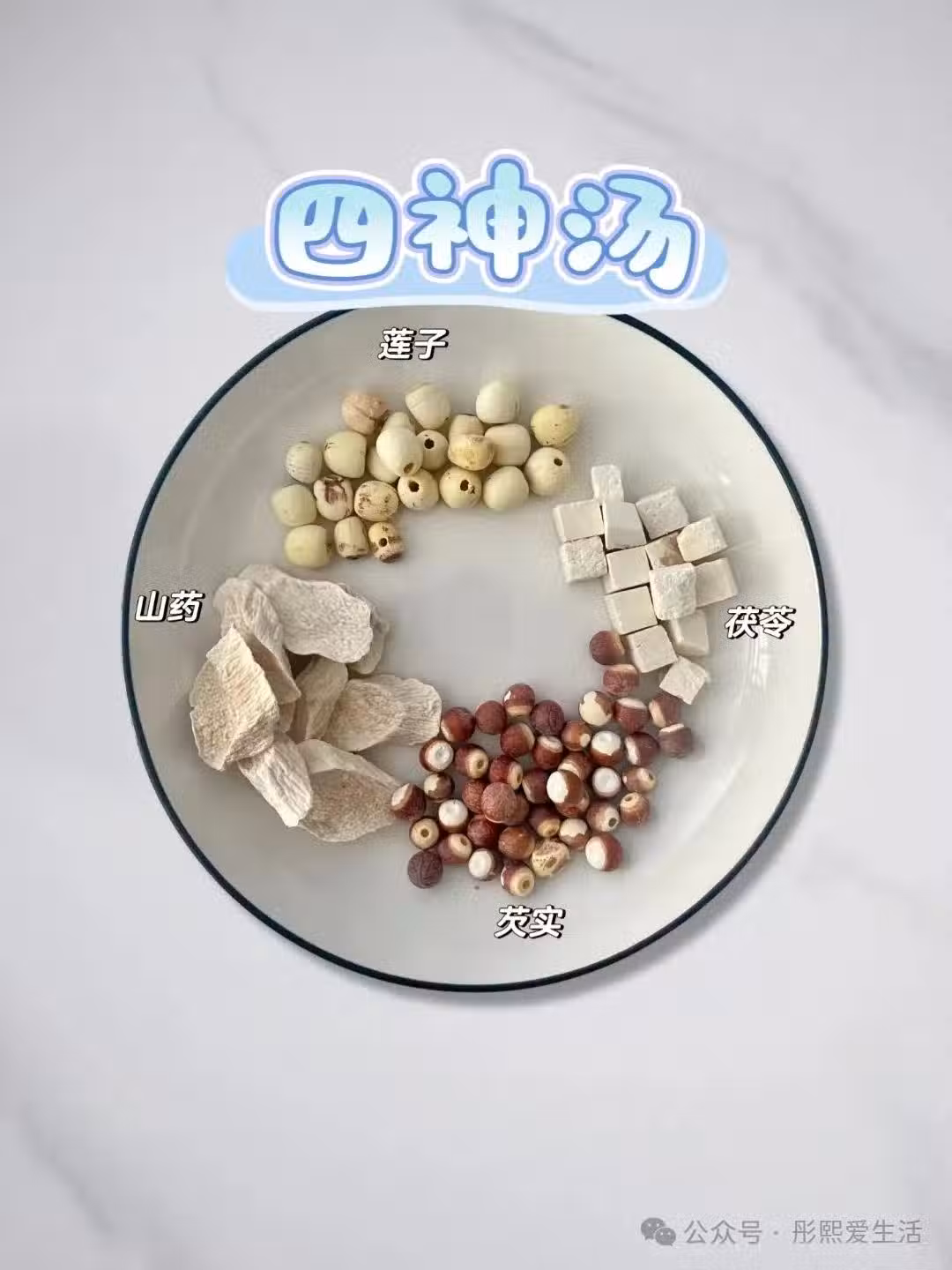 山藥、蓮子、芡實、茯苓各10克