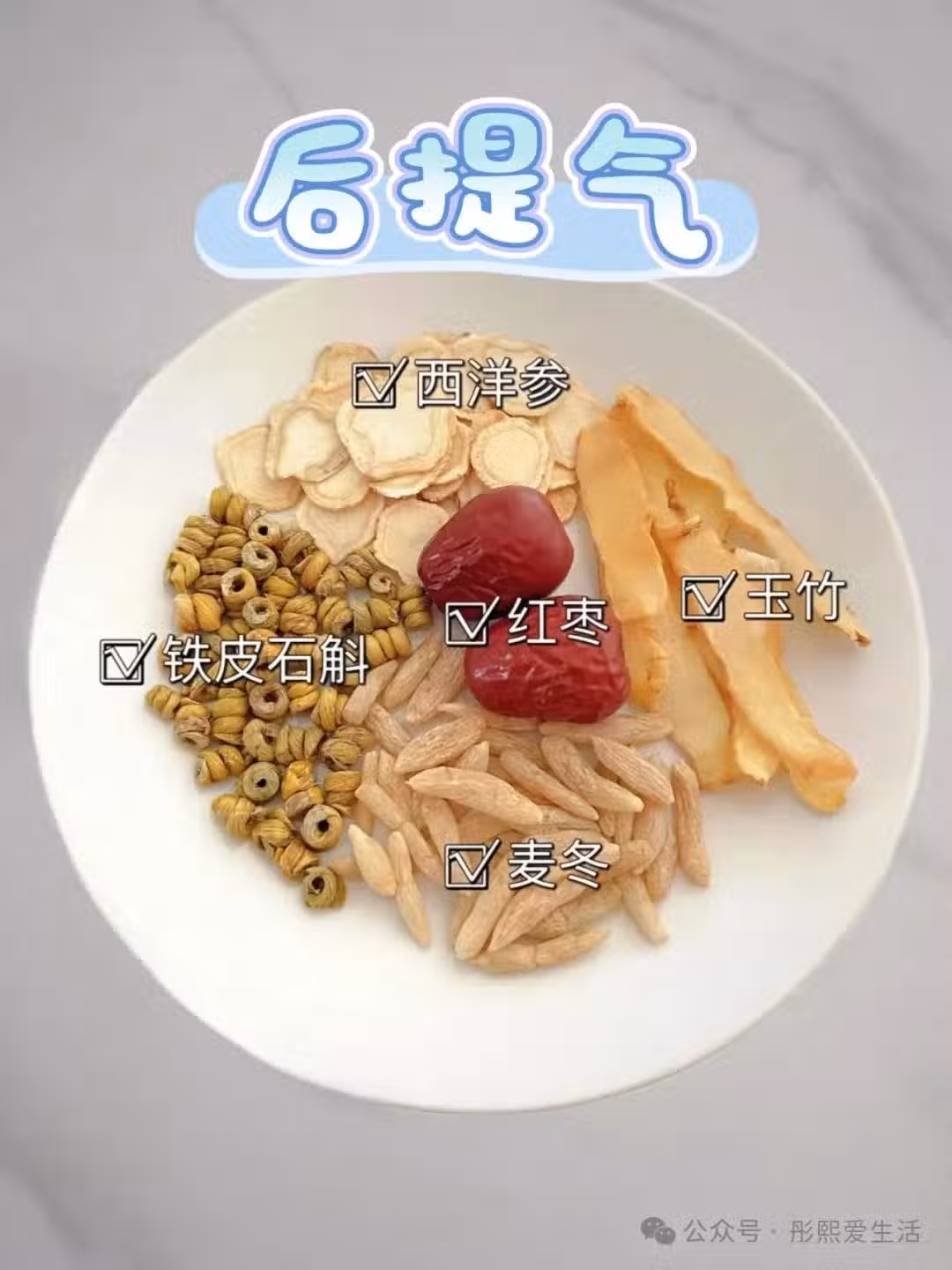 再提氣:石斛、西洋參、麥冬、玉竹、紅棗