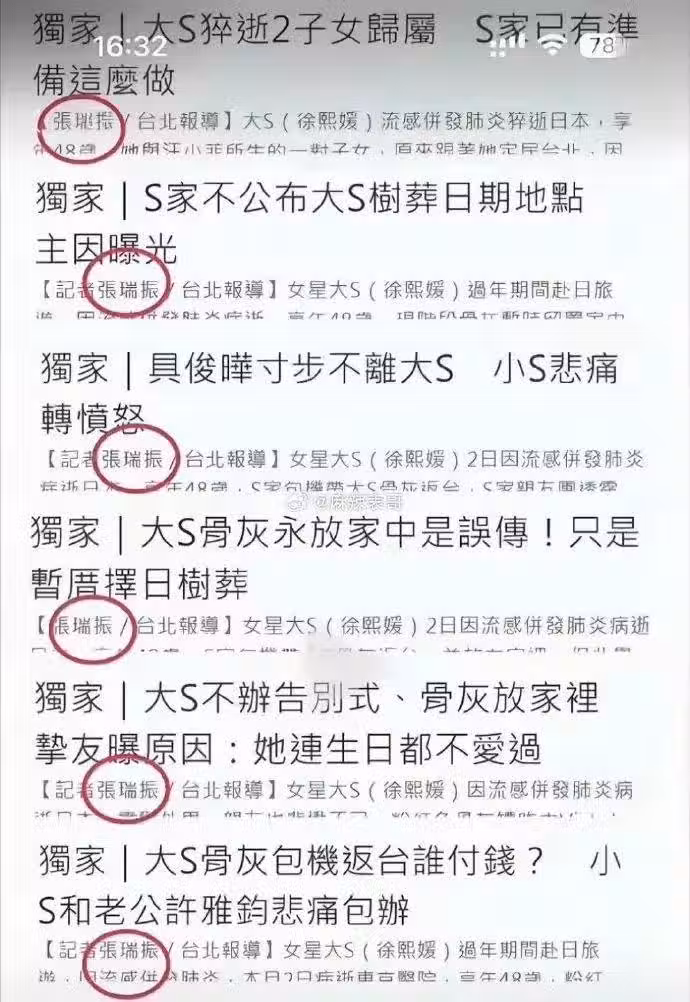 這名記者是台北的,19天都在報道大S骨灰安置問題、孩子歸屬問題、遺產爭奪問題,這些全都是為S家洗白的報道。