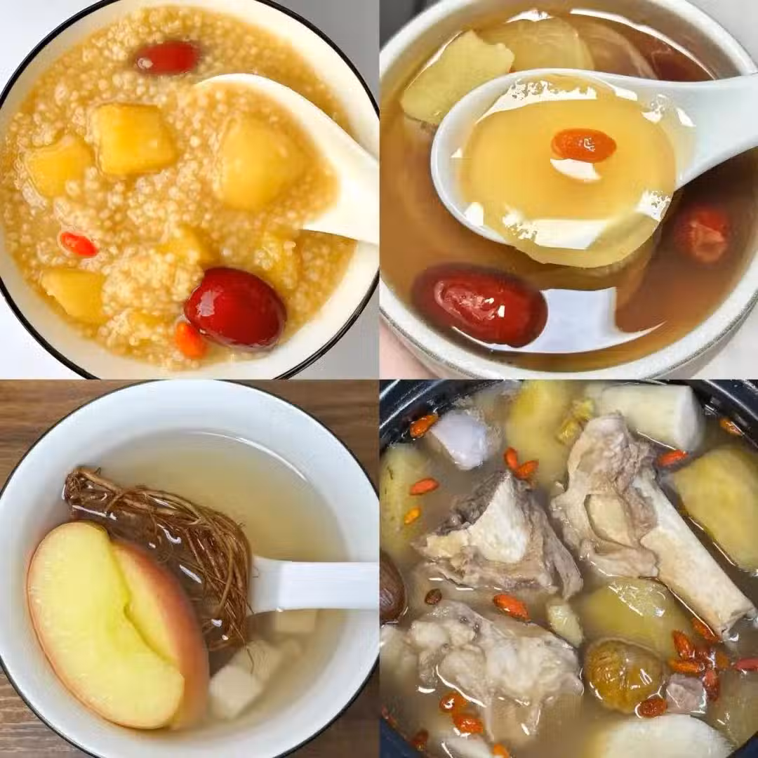 這道食譜的主角是蘋果、小米和紅棗,三個食材具有補氣養血、健脾養胃的作用。尤其是小米,素有「脾胃藥」之稱,能幫助安撫脾胃,配上蘋果的清甜口感和紅棗的滋補作用,效果更佳。