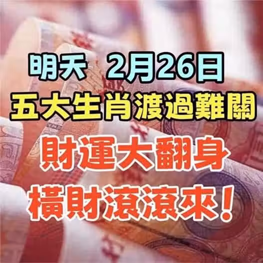 明天2月26日,五大生肖渡過難關,財運大翻身,橫財滾滾來