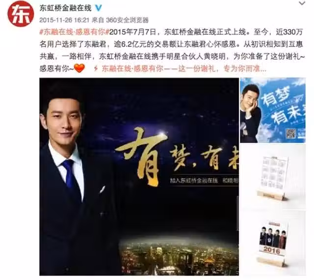 例如某知名平台因資金鍊斷裂「爆雷」,涉及數十億投資損失,黃曉明因曾為該平台代言而陷入公眾質疑。