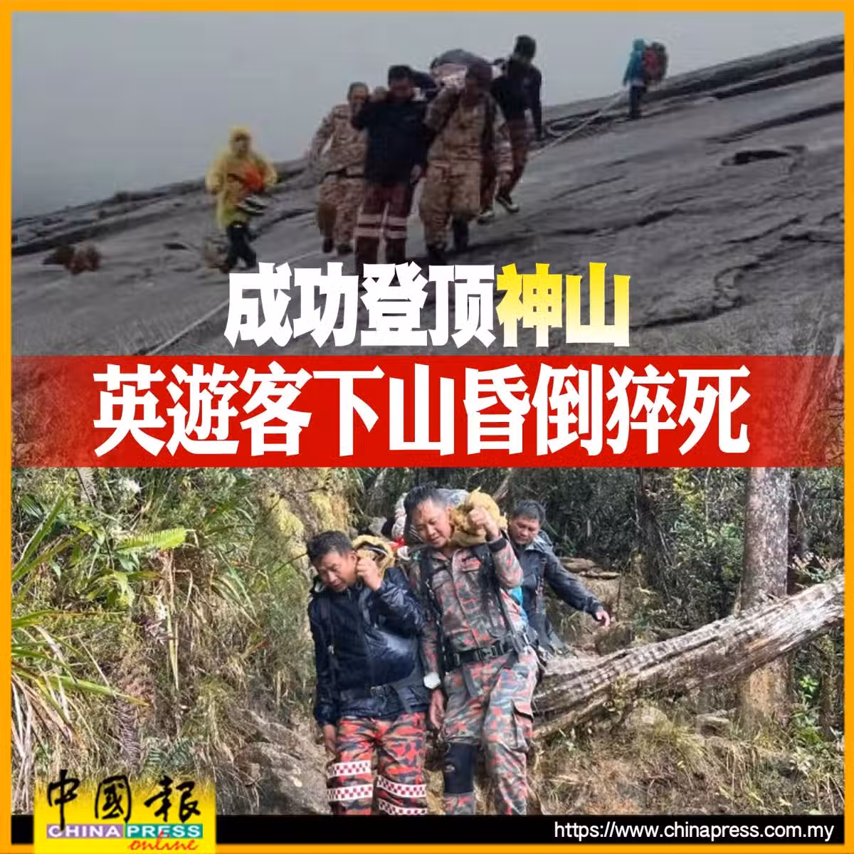 7旬英遊客成功登頂馬來西亞神山 ,英遊客下山昏倒猝死