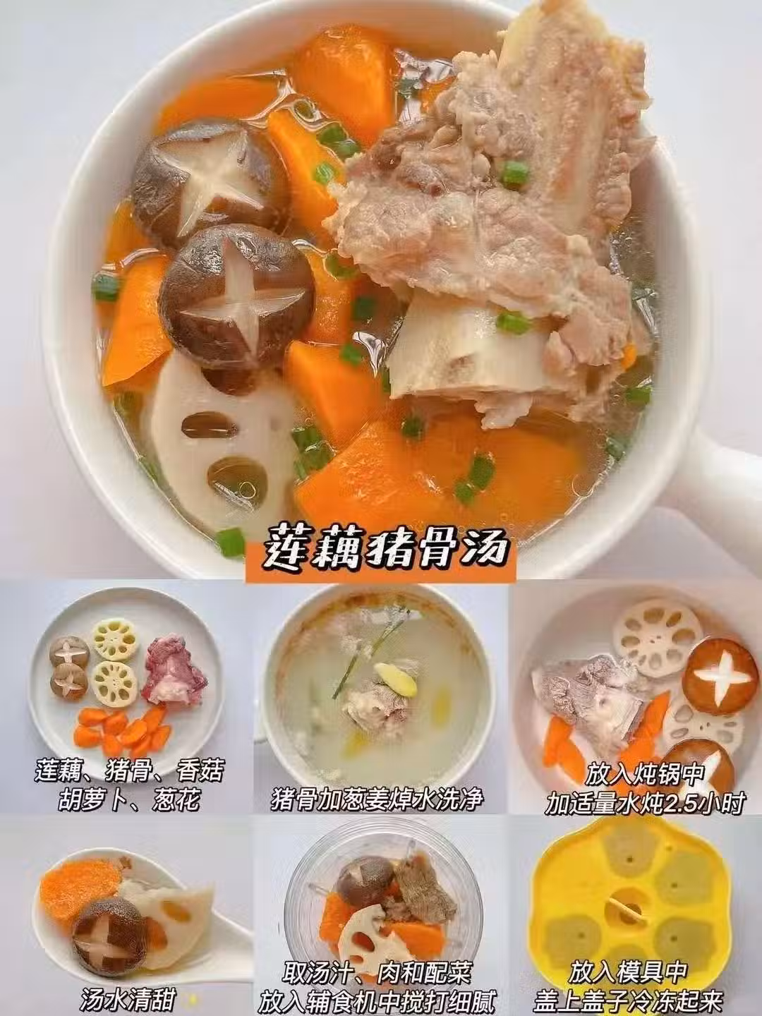豬骨加蔥姜焯水洗凈,與蓮藕、香菇放入燉鍋中。